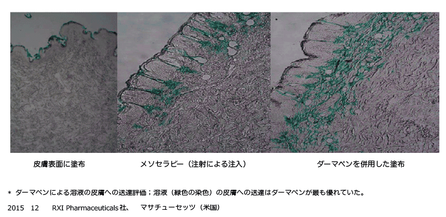 フラクショナルレーザーとの違いは、針で穴を開けたあとに、目的に合わせて薬剤を塗布し、真皮に浸透させて効果を増強させることができる点です。